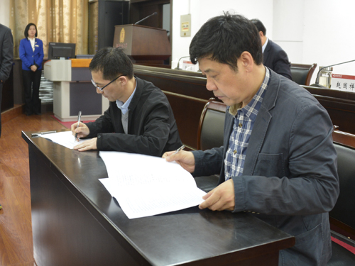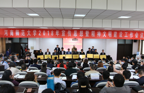 化学化工学院和政治与公共管理学院党委书记,教务处和校团委负责人代表各基层党委、党总支、直属党支部,党委职能部门和重点领域相关部门现场签订了《河南师范大学意识形态工作责任书》。