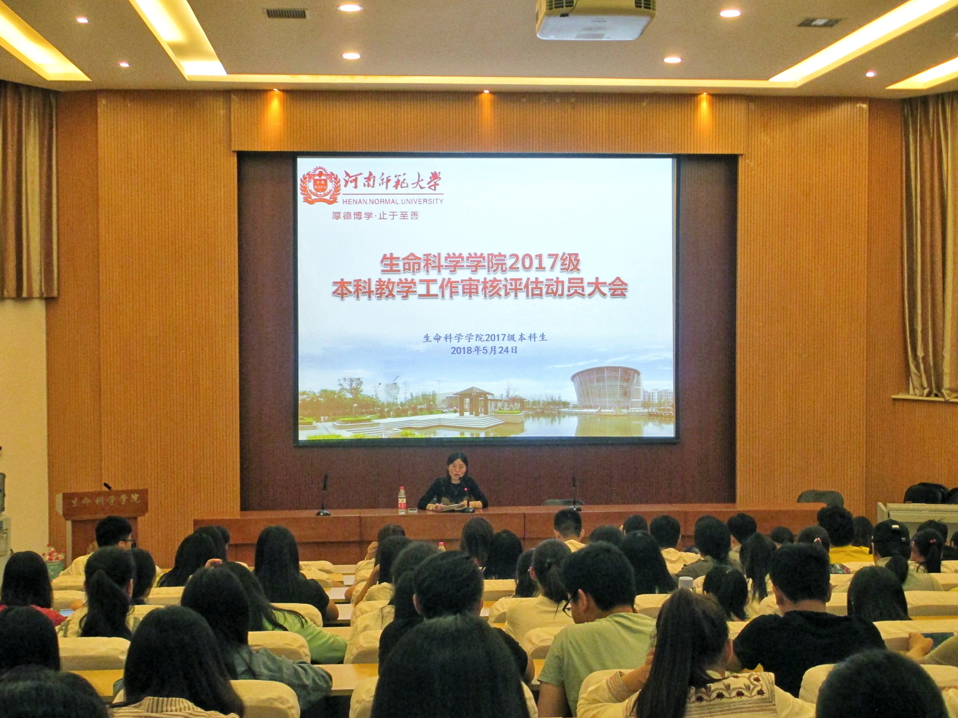 为迎接本科教学工作审核诊断评估,营造人人参与评建工作的浓厚氛围。5月24日晚,生命科学学院2017级在生物报告厅连续召开四场本科教学工作审核评估动员大会。485名2017级本科生及兼职辅导员分专业分场次全覆盖参加会议。