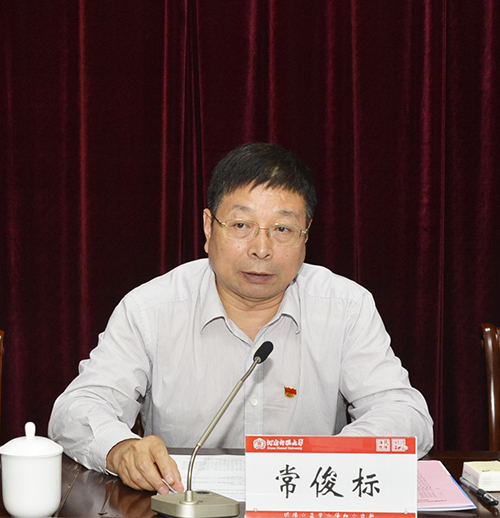 9月11日上午,我校“不忘初心、牢记使命”主题教育动员部署会议在党校教室召开。党委书记赵国祥作动员部署,省委第十二巡回指导组组长、河南农业大学原党委书记程传兴出席会议并讲话,校党委副书记、校长常俊标主持会议。