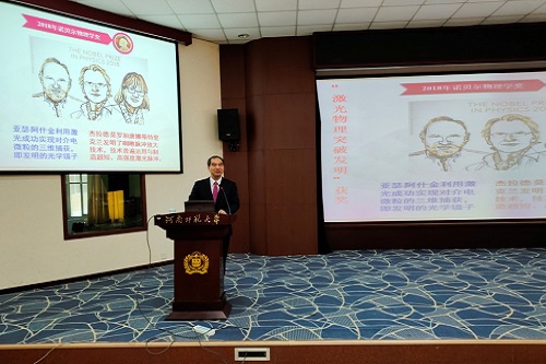 10月25日上午,应我校物理学院邀请,北京大学副校长龚旗煌院士来我校讲学。报告会在物理北楼三楼报告厅举行。党委常委、副校长刘玉芳出席并主持会议。物理学院负责人、教师代表及300余名学生参加报告会。