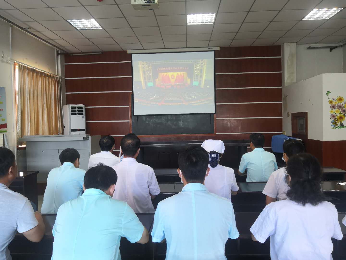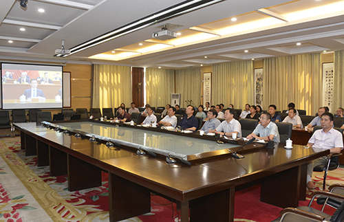 在勤政楼第三、四会议室,校领导赵国祥、陈广文、李学志、张尚字以及各部门相关同志全程收看了大会直播。