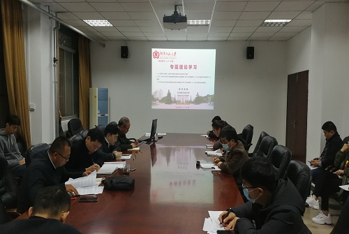 11月10日上午,新联学院党委理论学习中心二组在小店校区第一会议室集中学习党的十九届五中全会精神。学院领导班子和党政办公室、党委组织科、党委宣传科、学生处等部门负责人参加学习。
