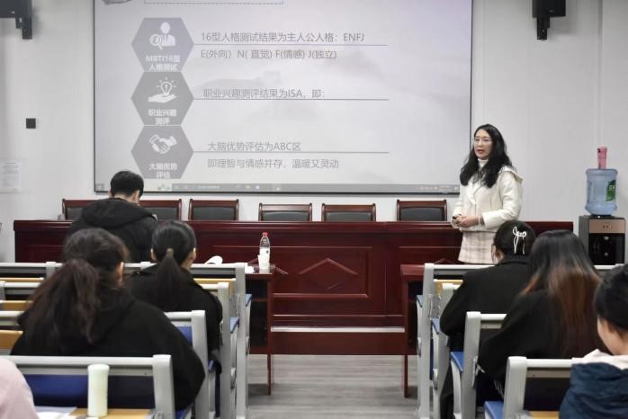 本次大赛以“筑梦青春志在四方,规划启航职引未来”为主题,分为作品展示、模拟问答和评委点评三个环节。首先由各位参赛选手依次上台进行PPT展示,选手通过对自我认知、职业认知与决策、计划与路径、评估与调整、职业道德等方面的展示,向评委们充分地展示了自身未来发展规划。随后,各位评委老师对选手在未来职业道路中可能面临的问题进行提问,选手们根据实际情况给予回应。最后,各位老师进行一对一分析与点评,详细地指出各位选手目前存在的问题并给出指导建议,表达了对各位选手的殷切期望与祝福,希望他们在日后的学习和生活中不断提升自我,培养与职业密切相关的专业技能,完善自身发展规划。