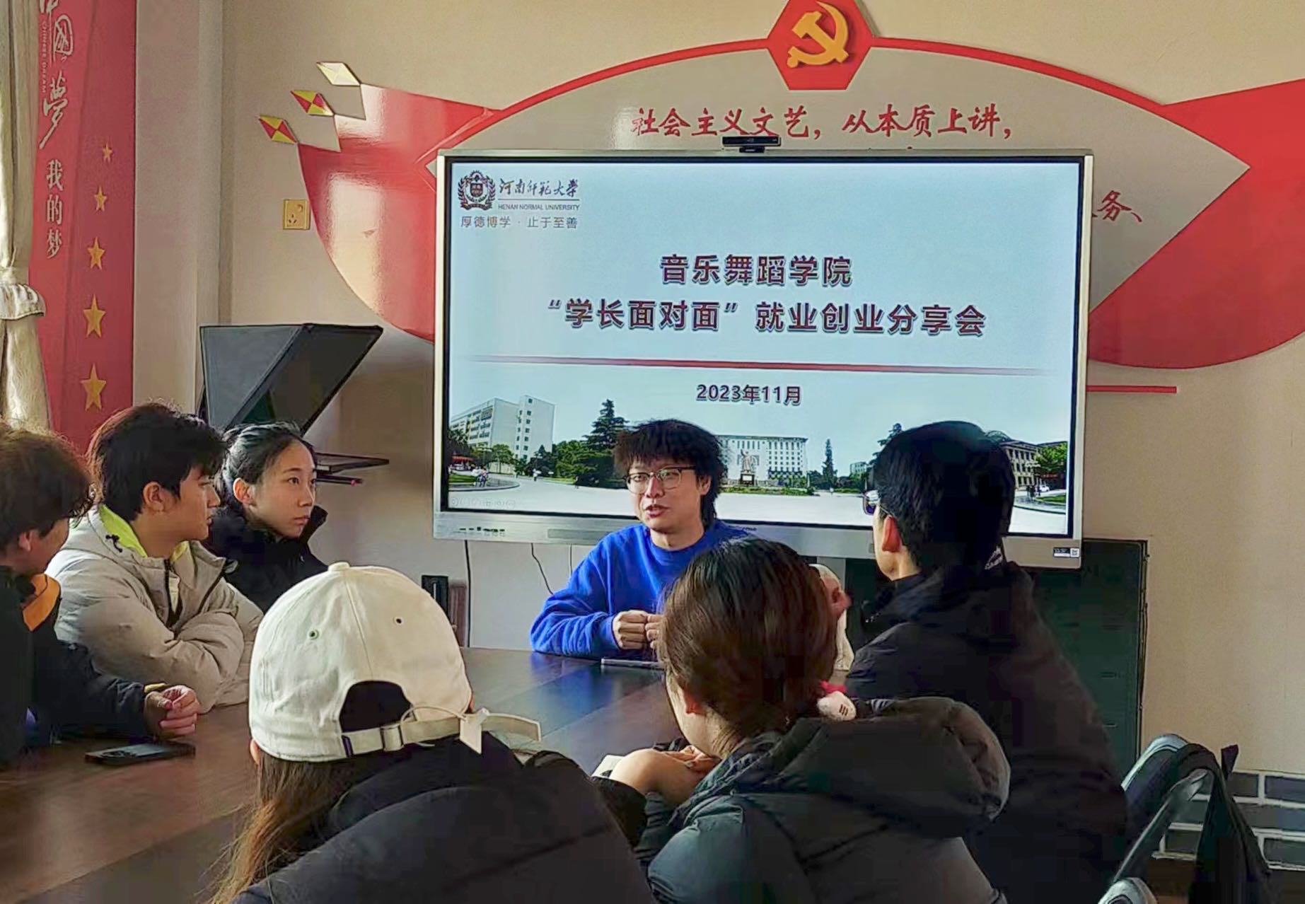 为帮助新生年级学生树立就业意识、做好学习规划,帮助高年级学生做好考研规划、积极实习实践,帮助毕业年级了解就业形势、理性就业择业,音乐舞蹈学院特举办“就业传帮带·师兄师姐面对面”经验交流分享活动,邀请优秀毕业生返校,围绕考研与就业两大主题与同学开展面对面交流分享活动。