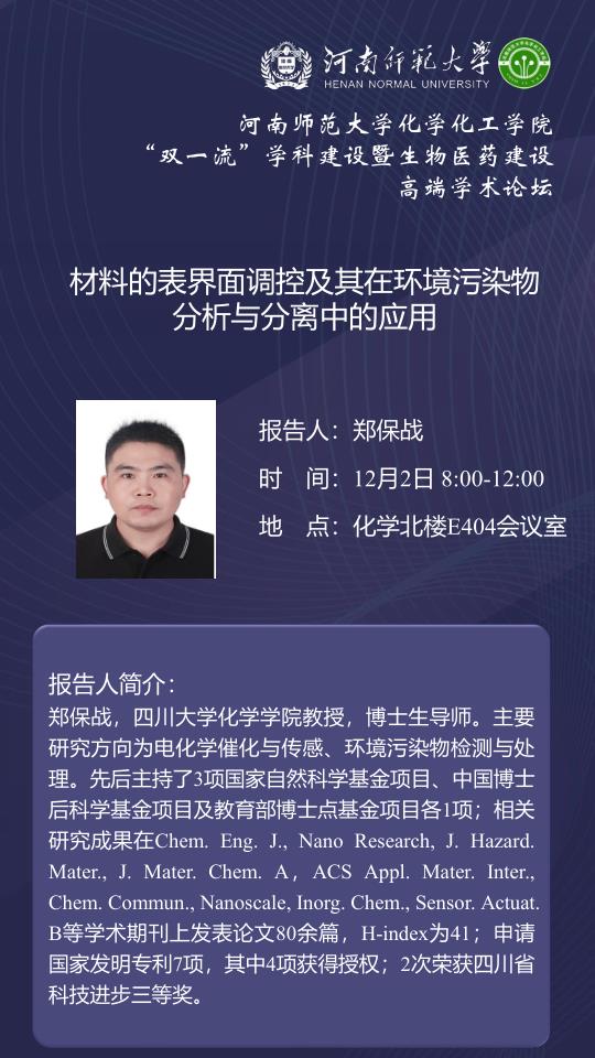 四川大学郑保战教授将应邀做客百年校庆之“俊甫”讲坛