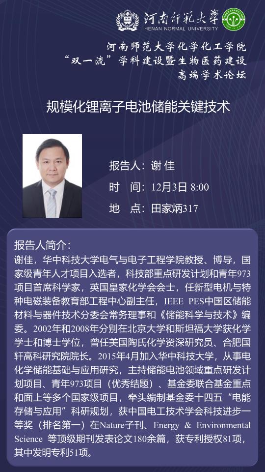 华中科技大学谢佳教授将应邀做客百年校庆之“俊甫”讲坛