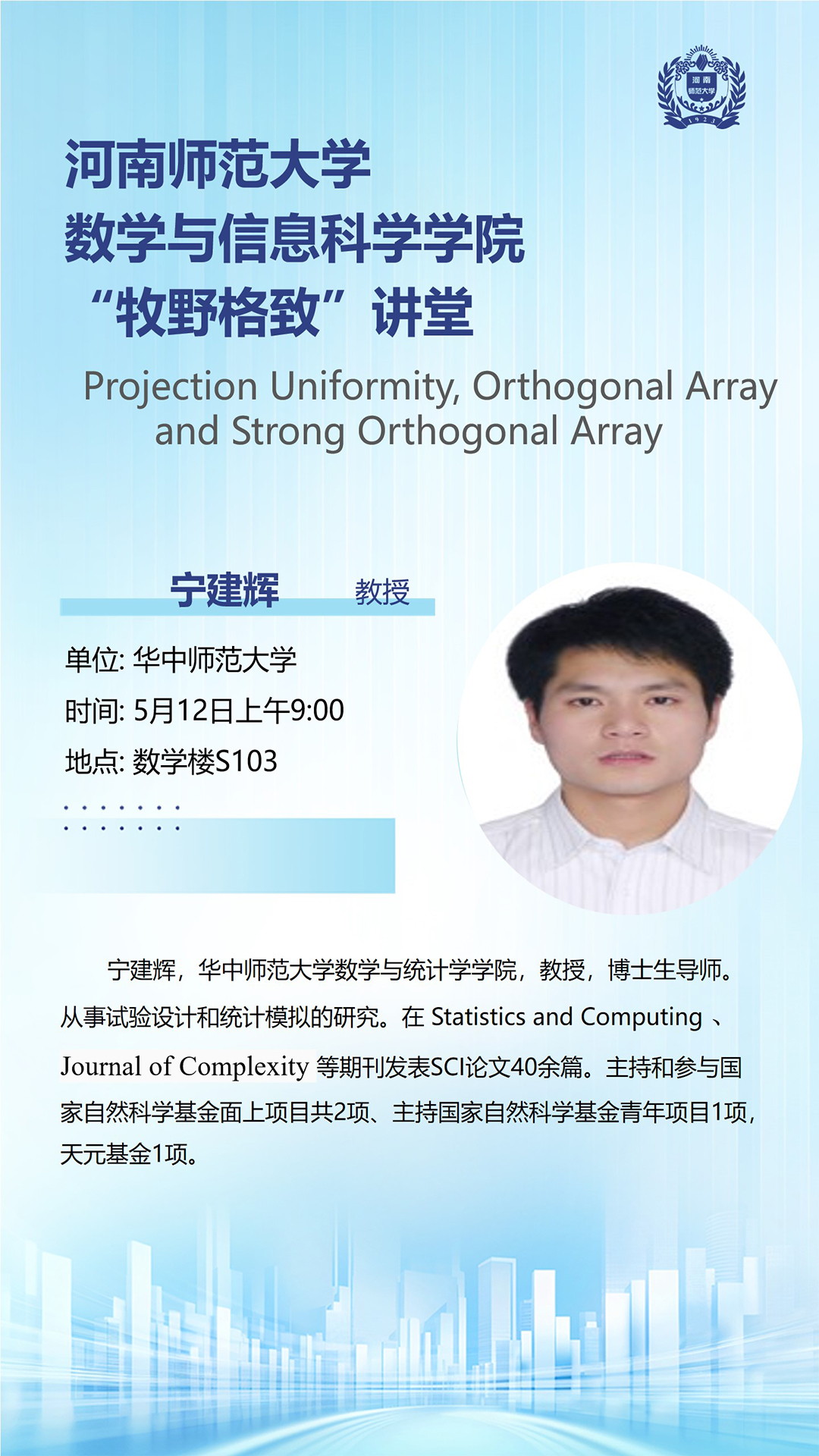 华中师范大学宁建辉教授将应邀做客“牧野格致”讲堂