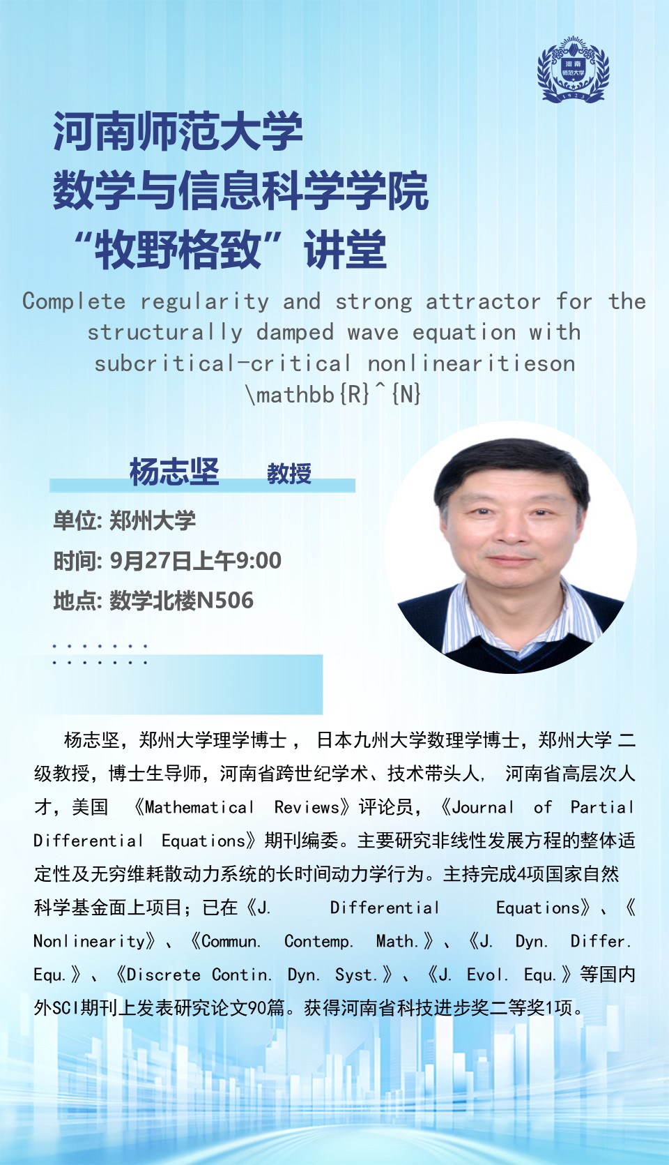 郑州大学杨志坚教授将应邀做客“牧野格致”讲堂