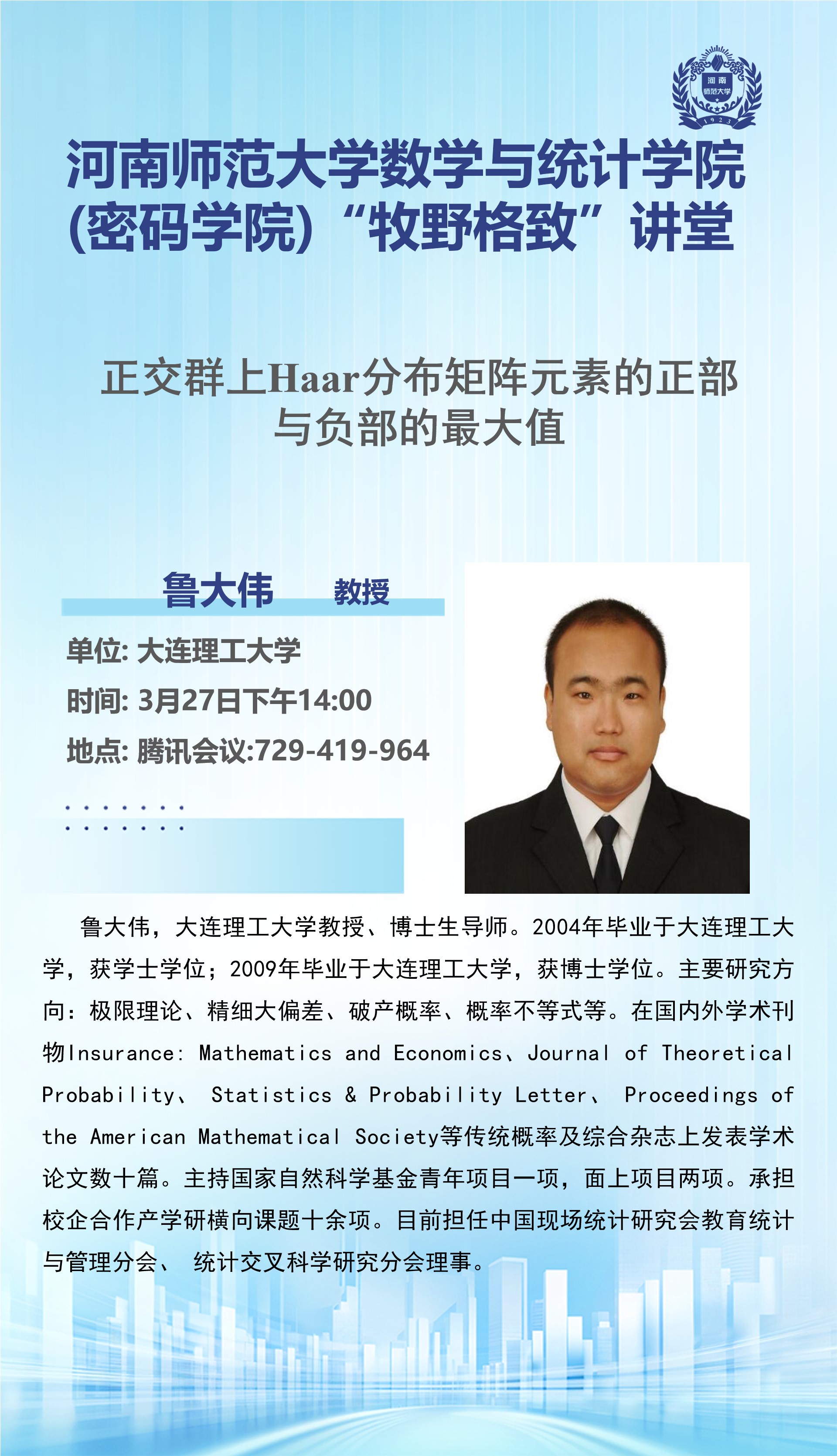 大连理工大学鲁大伟教授将应邀做客“牧野格致”讲堂