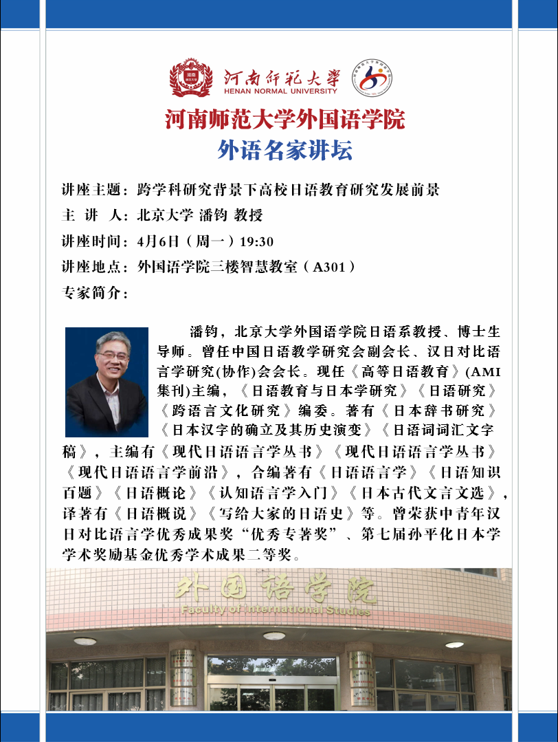 北京大学潘钧教授将应邀做客“外语名家讲坛”