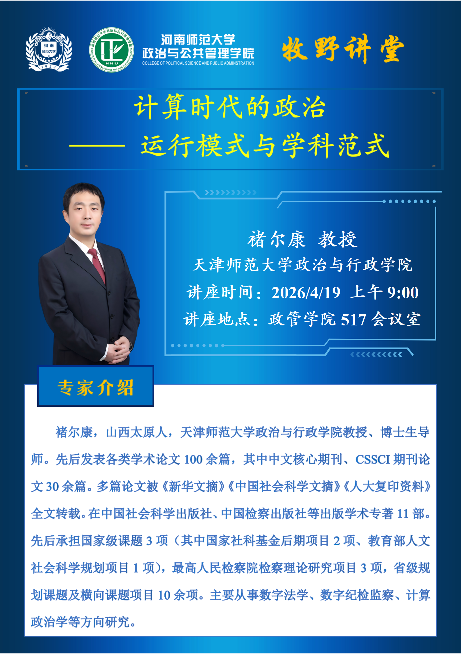 天津师范大学褚尔康教授将应邀做客“牧野讲堂”