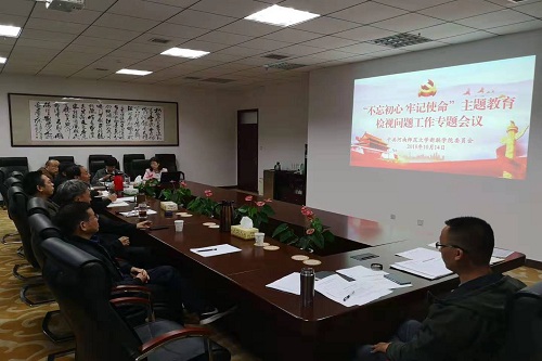 10月14日上午,按照上级党委统一部署,新联学院“不忘初心、牢记使命”主题教育检视问题工作专题会议在图书信息楼七楼会议室召开。学院全体党政领导参加会议。会议由学院党委书记张永胜主持。