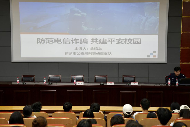 在第十一个全民国家安全教育日来临之际,为切实发挥宿舍长在维护校园安全稳定方面的作用,提升宿舍长队伍维护国家安全、防范电信诈骗能力,4月15日,我院在学院217会议室面向全体宿舍长举办“识别诈骗套路,筑牢安全防线”防传销反诈骗宣讲,新乡市公安局刑事侦查支队一级警长马旭阳、反诈宣讲员金鸣上担任主讲人,活动由学院党委副书记李建华主持。