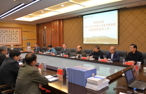 督导组组长、省高校纪工委副书记乔国富对此次检查工作的目的、意义、检查的方式及检查的主要内容作了简要的介绍,并提出了工作要求。校长王键吉就我校2012-2013年民主评议学校行风工作情况向督导组进行了汇报。他指出,我校一直以来高度重视民主评议学校行风工作,坚持“标本兼治、纠建并举”的方针,以民主评议为手段,精心组织部署,大力宣传动员,营造了行评的良好氛围;通过广泛收集意见和建议,认真开展自查,及时发现学校在行风建设方面存在的问题,有针对性地进行整改,取得了良好的效果,管理更加规范,校务更加公开,师生满意度不断提升,有力地推动了学校各项事业快速发展。汇报会结束后,督导组查阅了相关工作材料,进行了问卷调查,走访师生,并对相关部门进行了实地查看。