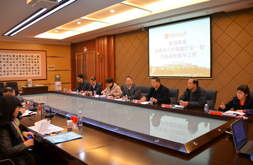 12月3日上午,河南省教育厅副厅长任锋一行4人到我校调研指导工作,校长王键吉、副校长黑建敏陪同调研。调研座谈会在勤政楼第三会议室举行,省教育厅财务处副处长王鹏及有关人员,我校校长办公室、财务处等部门负责人参加了座谈。座谈会由副校长黑建敏主持。
