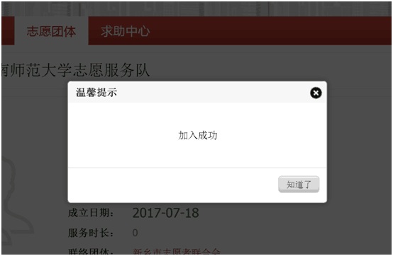 10.页面显示“加入成功”即完成注册工作!