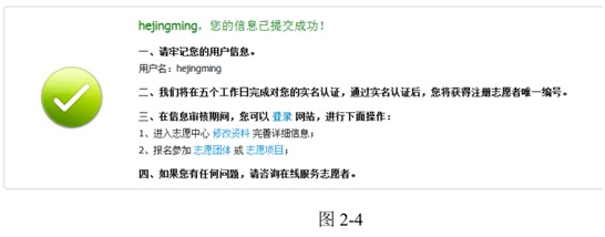 4.若用户填写的信息无误,进入信息提交成功页面,如图2-4所示: