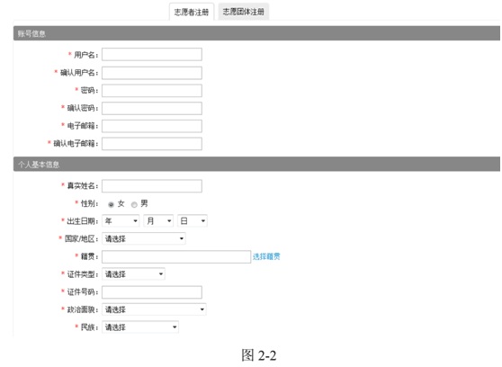 选择所属省份,进入该省份志愿者注册页面,如图2-2所示: