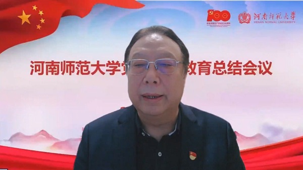 1月21日上午,我校在勤政楼第三会议室召开河南师范大学党史学习教育总结会议,深入学习贯彻习近平总书记重要指示精神,总结学校党史学习教育开展情况,对巩固拓展党史学习教育成果作出部署。校党委书记赵国祥作学校党史学习教育总结报告,校党委副书记、工会主席梅宪宾主持会议。会议采用线上线下相结合形式进行,校领导、校党史学习教育领导小组成员在现场参会,其他副处级以上领导干部、基层党支部书记、师生代表通过腾讯会议平台参加会议。
