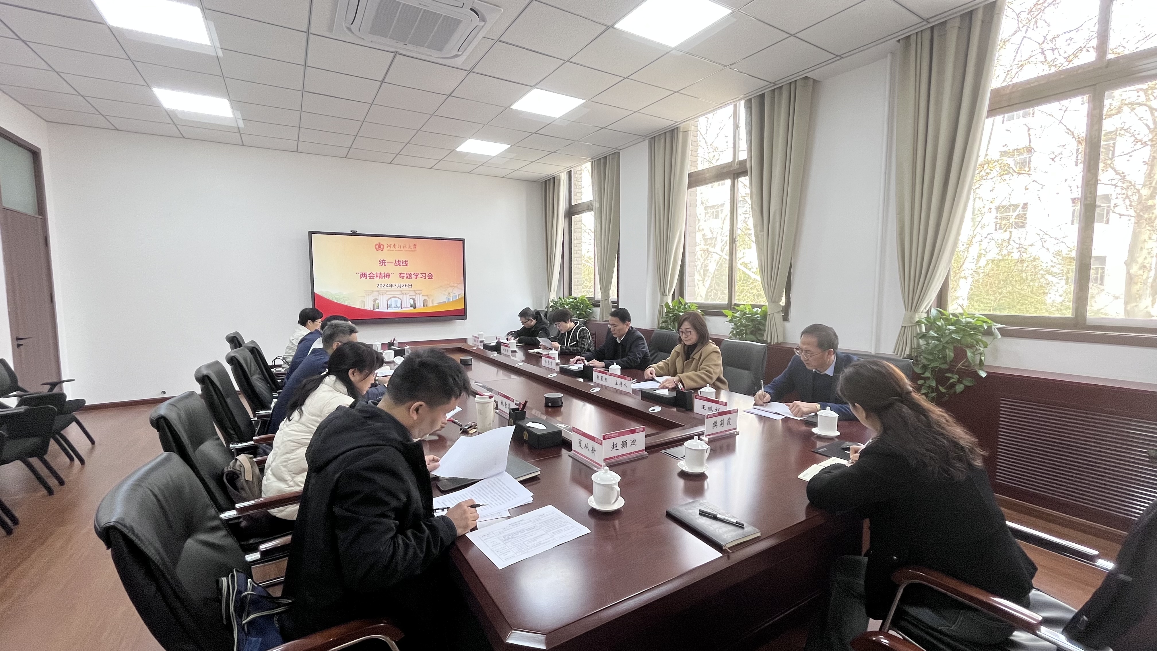 3月26日上午,我校统一战线在勤政楼第一会议室召开座谈会,专题学习两会期间习近平总书记在参加江苏代表团审议、看望参加政协会议的民革科技界环境资源界委员时的重要讲话精神与《政府工作报告》。党委统战部全体工作人员及各民主党派、统战团体负责人参加会议。会议由党委统战部副部长张晨寒主持。