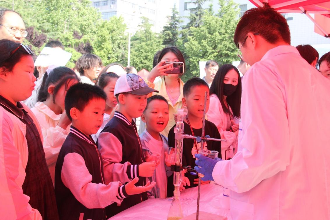 实践育人,搭建“党团同行”志愿服务平台。依托河南省i科普志愿服务团,联合校科协连续举办五届“魅力化学”科技文化节,党员教师带领团员结合专业特长,精心设计科普课程,深入新乡市种德小学、河师大外国语中学等单位,累计开展“魅力化学科普推广日”活动10余次,参与师生达万余人次,在服务奉献中增长才干、锤炼品格。