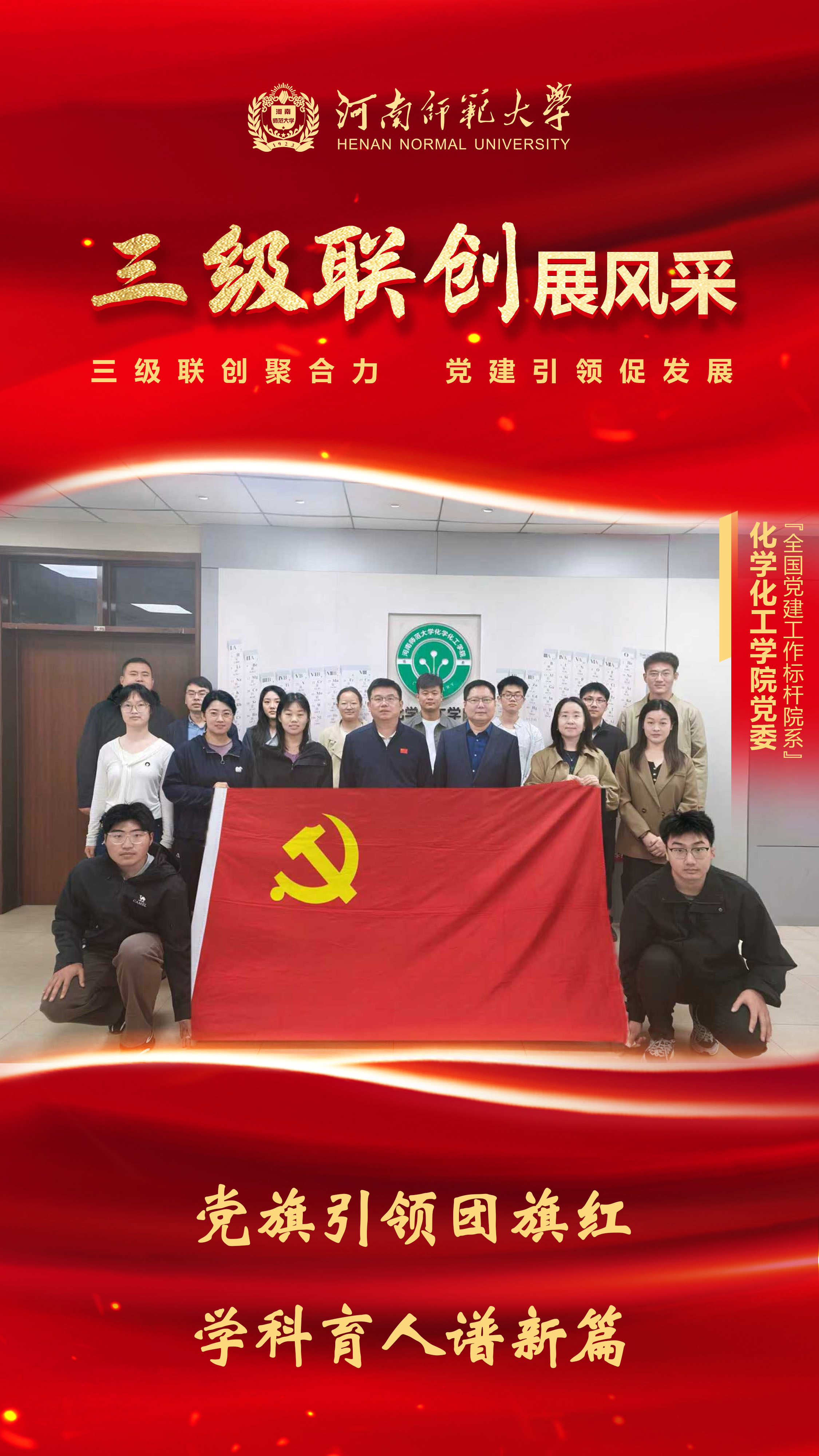 【编者按】习近平总书记指出:“基层是党的执政之基、力量之源。”党的基层组织是党的全部工作和战斗力的基础。基础不牢、地动山摇。为进一步推进学校强基引领“三级联创”工作和“党建引领基层高效能治理”专项行动,落实新时代党的建设总要求,树立和践行正确政绩观,全面梳理基层党建工作新思路、新做法、新成效,不断增强基层党组织组织力、凝聚力、战斗力,积极推动党建工作与事业发展深度融合,持续营造比学赶超、创先争优的浓厚氛围,校园网特推出“三级联创展风采”栏目,总结交流和宣传推广基层党建工作成效,充分发挥先进基层党组织引领示范、辐射带动作用,努力推动党建工作再上新台阶。