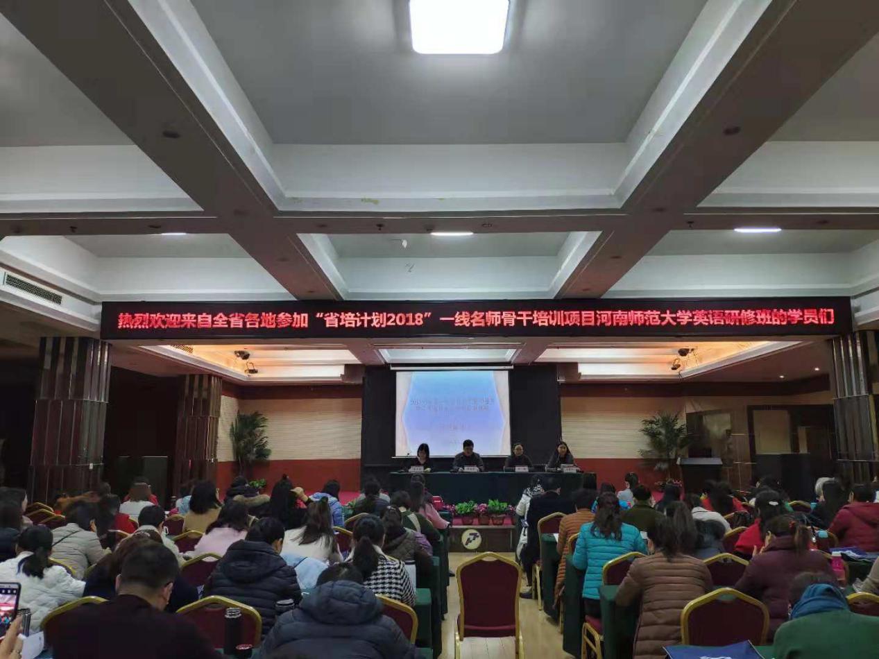 2018123日,省培计划(2018) ——一线名师骨干培训项目河南师范大学英语研修班开班典礼在佛力得假日酒店报告厅举行。外国语学院副院长、国培项目负责人贾建嵩,中小学教师教育办公室主任、学科专家王晔,教师代表王东兰和班主任们出席了开班典礼。来自河南省各市、县、区近150名英语教师参加了本次开班典礼。