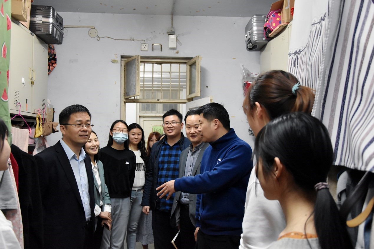 为进一步了解学生们学习和生活上的需要,落实好以学生为本的育人理念, 4月29日下午,外国语学院领导班子在各年级辅导员的陪同下进行了学生宿舍走访,深入了解同学们的生活状况。