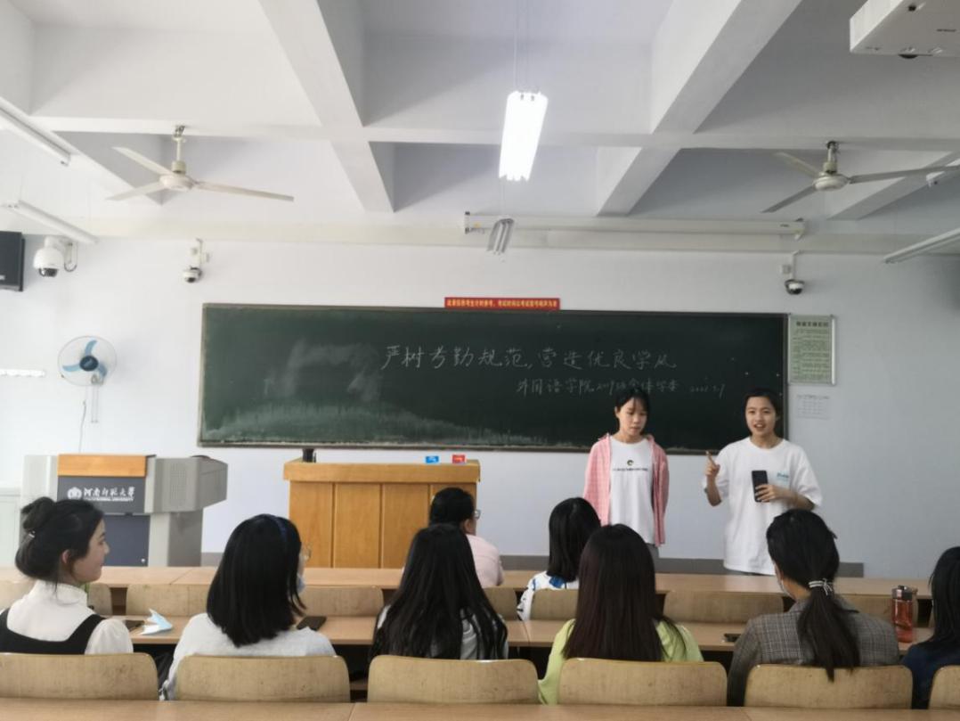 5月7日中午,外国语学院2019级于启智楼207开展学风建设会议,会议由年级纪律委员周蓝欣、杜琰主持,全体学习委员参会。
