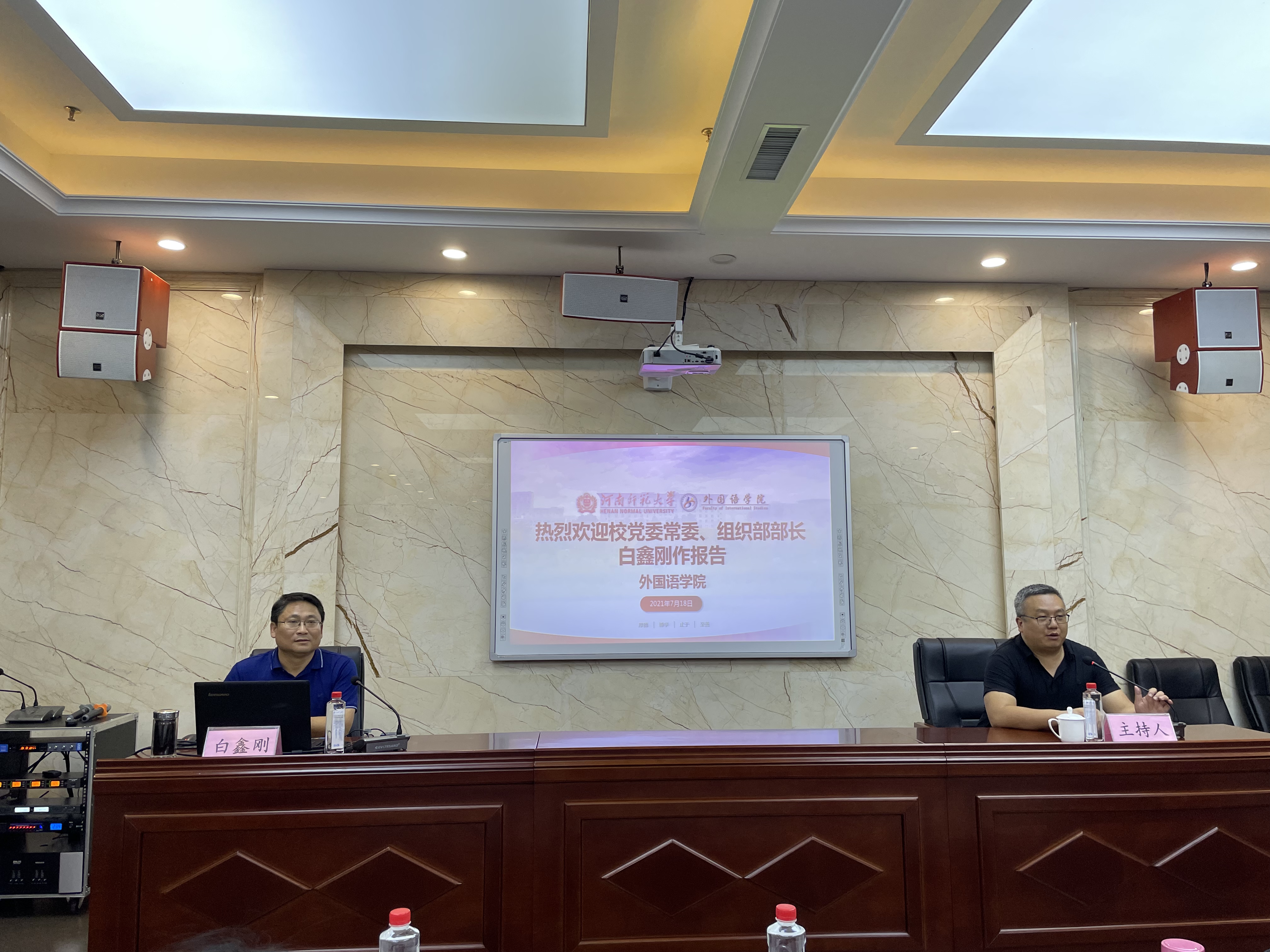 为深入学习贯彻习近平总书记在庆祝中国共产党成立100周年大会上的讲话精神,更好落实校党委关于党史学习教育“停课不停学”的工作部署,进一步提高科级干部履职尽责的能力和工作水平,外国语学院于7月17-18日在新乡乡镇干部学院开展党史学习教育专题党课暨科级干部专题培训班。此次培训围绕党史学习教育、综合能力提升等内容,采用专题报告、分组研讨、现场教学相结合的方式进行。