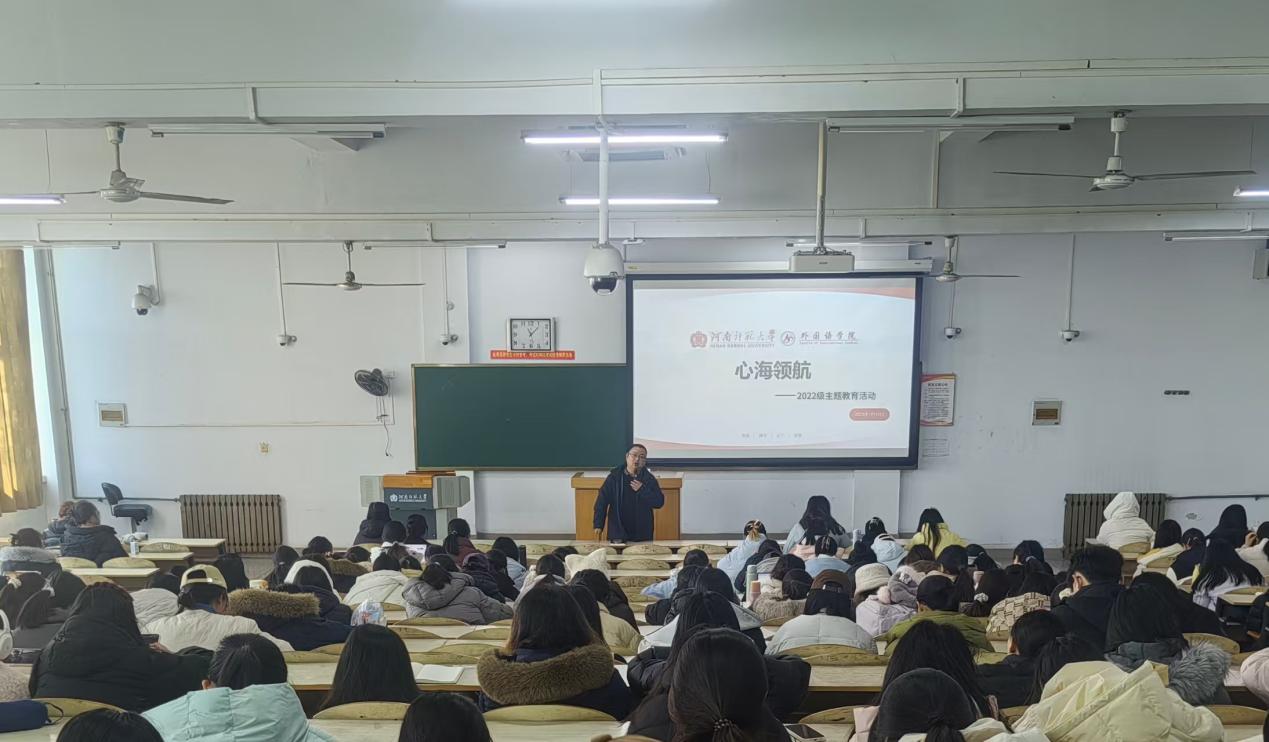 为深化毕业生思想政治教育,引导学子回顾成长、立足当下、展望未来。1月15日上午,外国语学院于新五五四201教室举办“心海领航”毕业年级主题教育活动。学院党委副书记鲁鹏飞、2022级专兼职辅导员及2026届全体毕业生参与活动,活动由辅导员郭倩倩主持。