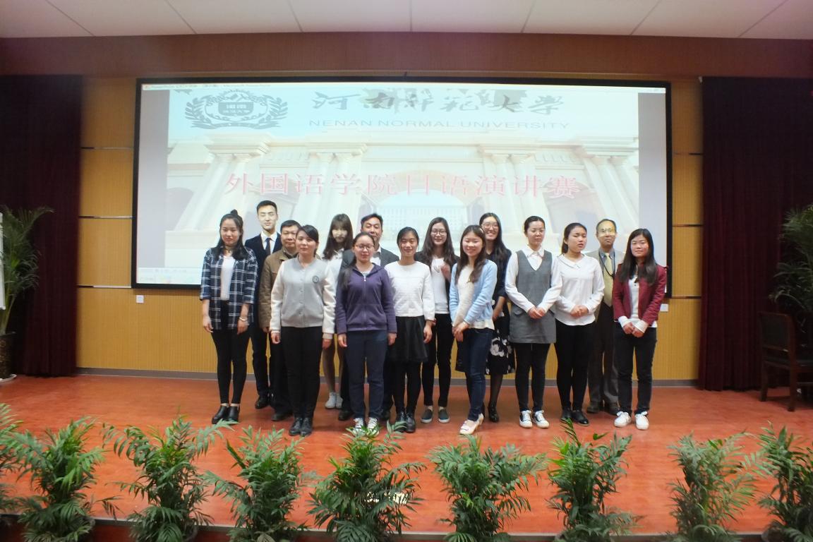 2016年4月17日晚,为有力推动“第十一届中华全国日语演讲大赛”华中赛区预赛的顺利开展,由河南师范大学外国语学院组织日语专业学生,在外国语学院报告厅举行日语演讲大赛,出席本次比赛的评委有町田老师,藤村老师,王磊老师等六个评委,同时百余名学生观看比赛。