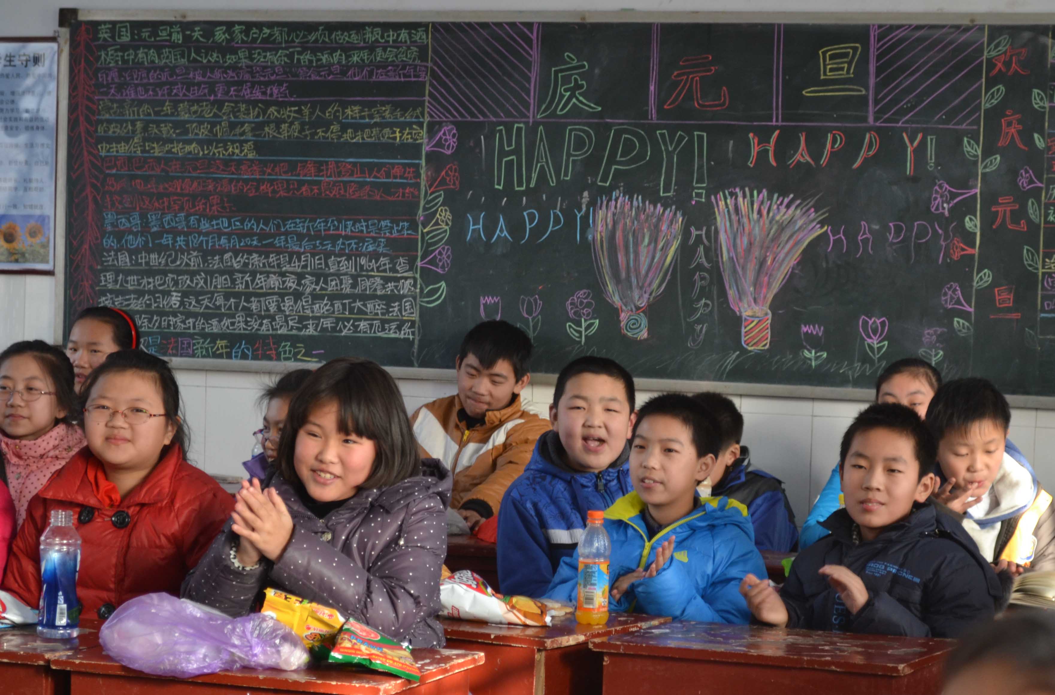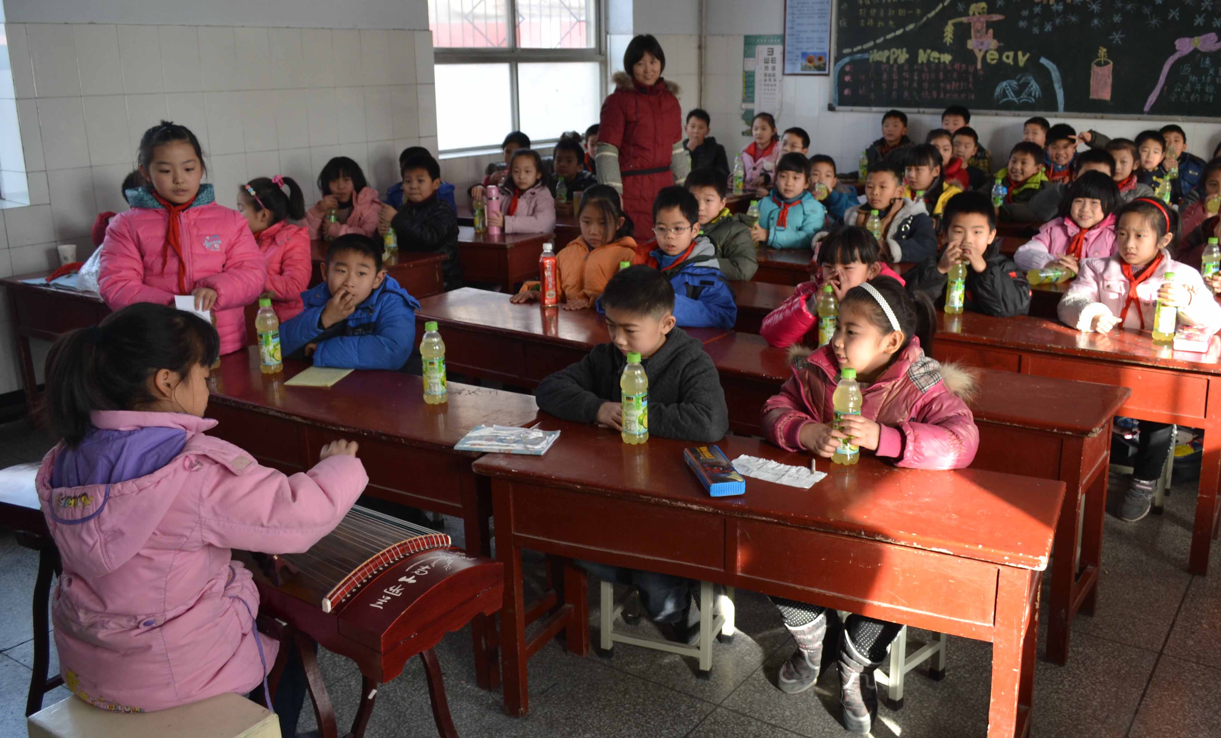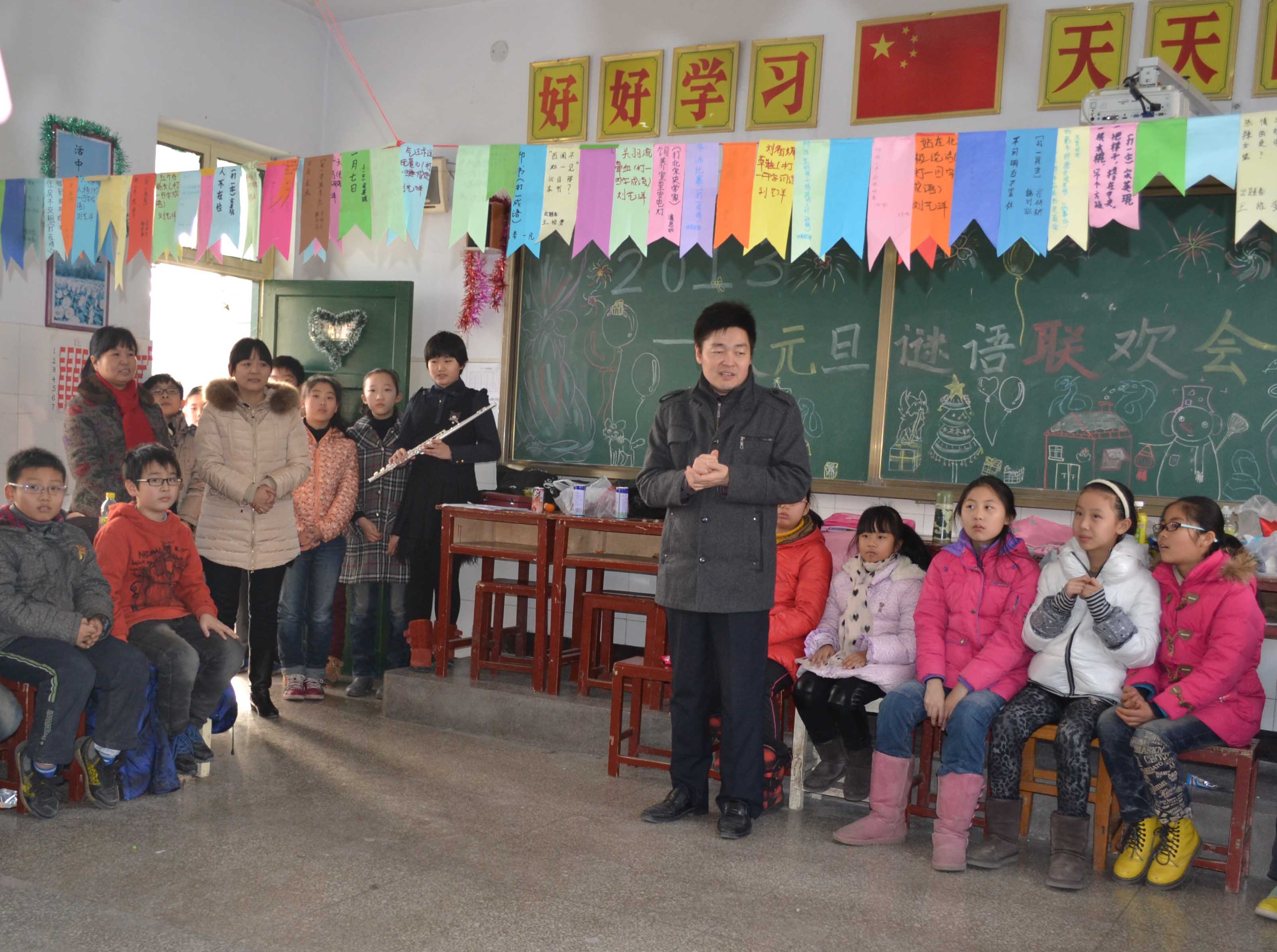 12月31日下午,附属小学13个班分别举办了迎新年元旦联欢活动。联欢会节目各具特色,精彩纷呈,有猜成语、独唱、相声、小品、乐器、舞蹈等节目。李万里校长等四位领导到各班致新年贺词,表达了节日的问候和衷心的祝福。