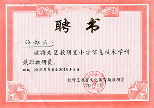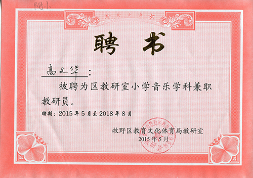 我校高文华老师被聘为小学音乐学科兼职教研员,许秋云被聘为小学信息技术学科兼职教研员。
