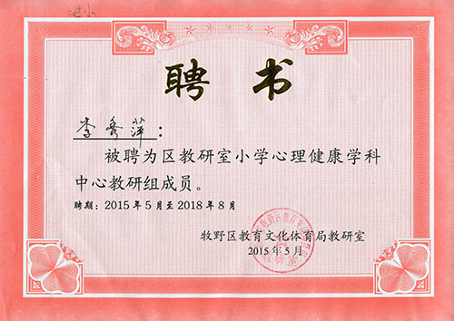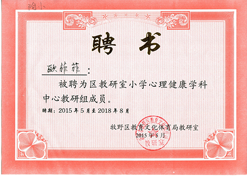 我校李秀萍、欧菲菲、魏贝贝三位老师被聘为区教研室小学心理健康学科中心教研组成员。