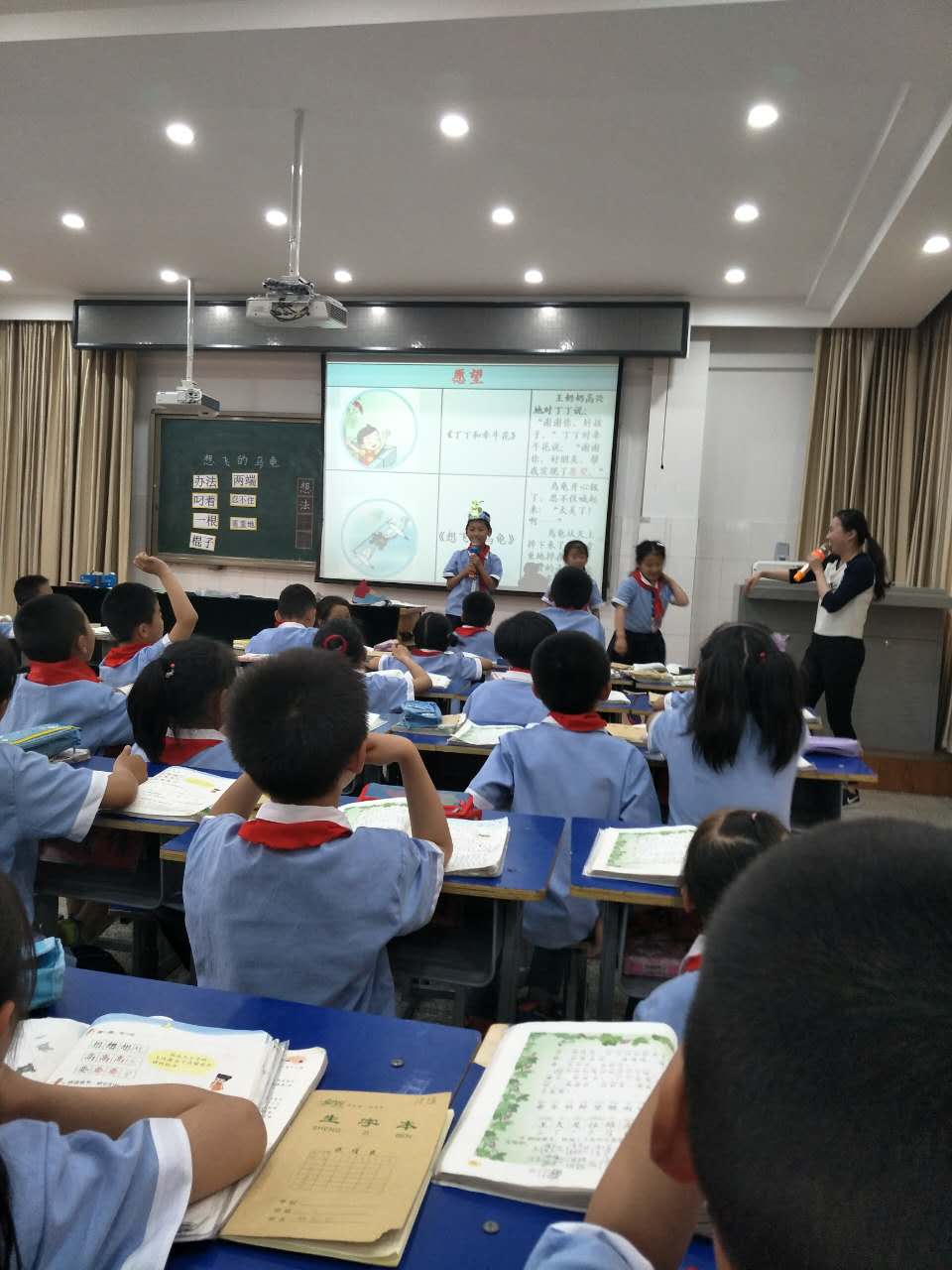 魏贝贝执教了群文阅读课《一枝桃花别样情》,杨舸冉执教了《会飞的乌龟》。参赛教师神情投入,力求以最好的状态参与比赛,充分展示自己的才能。