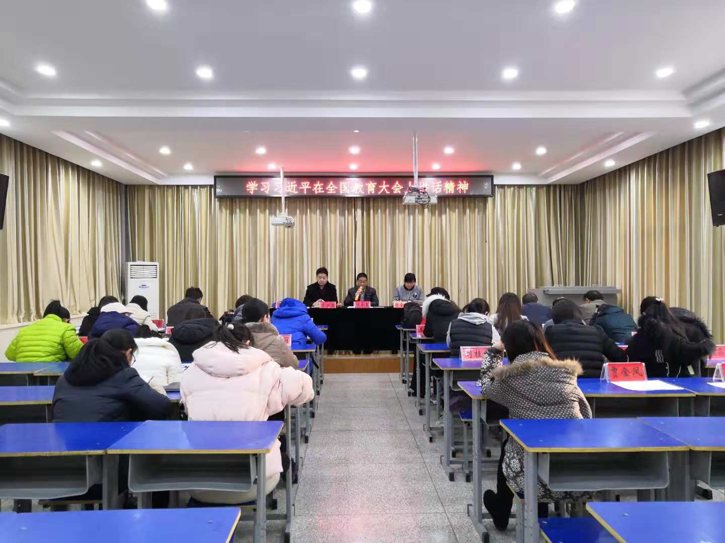 2018年12月4日下午四点半,附属小学在四楼会议室召开教职工学习习近平在全国教育大会上的讲话精神。由程乔夏主持。