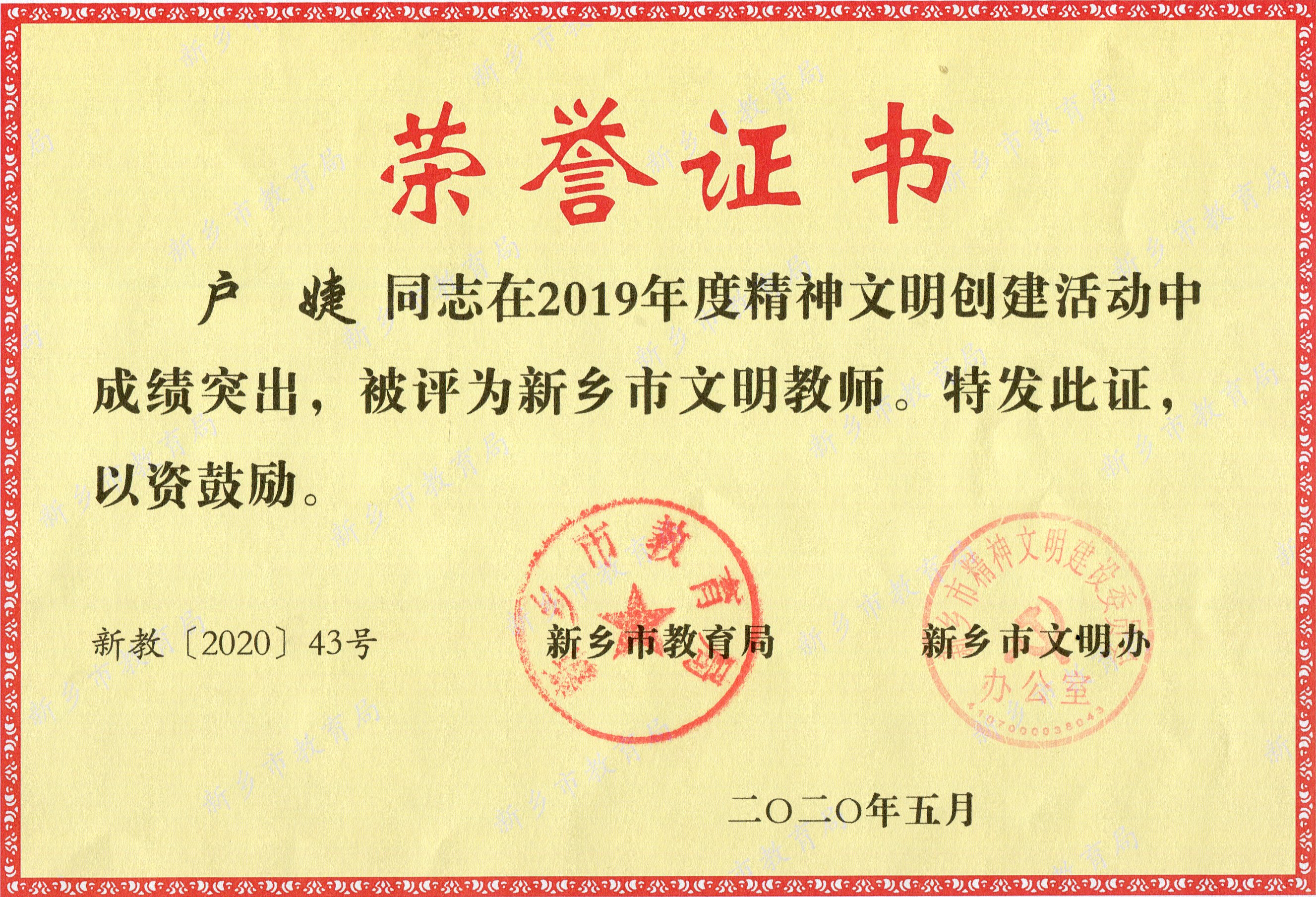 户老师通过开展社团活动,使学生们掌握了更多的技能,校园文化生活也变得更加丰富多彩!她自觉践行社会主义核心价值观,追求高尚的师德师风,平时能够以身作则,为人师表,关爱学生,团结同事,诚实守信,乐于助人,无私奉献,从不计较个人得失。