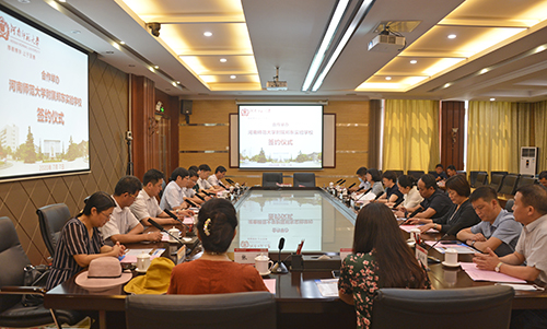 7月7日上午,我校基础教育集团与郑州育人教育集团合作举办河南师范大学附属郑东实验学校签约仪式在勤政楼第三会议室举行。仪式开始前,校长常俊标亲切接见了前来出席签约仪式的郑州育人教育集团董事长刘亚敏、党总支书记王卫东一行。我校党委常委、副校长李学志,小学教育专家李玉芳、学前教育专家刘晓红,以及基础教育集团办公室、教育学部、小学、幼儿园等单位负责人等参加了签约仪式。仪式由校长办公室主任白鑫刚主持。