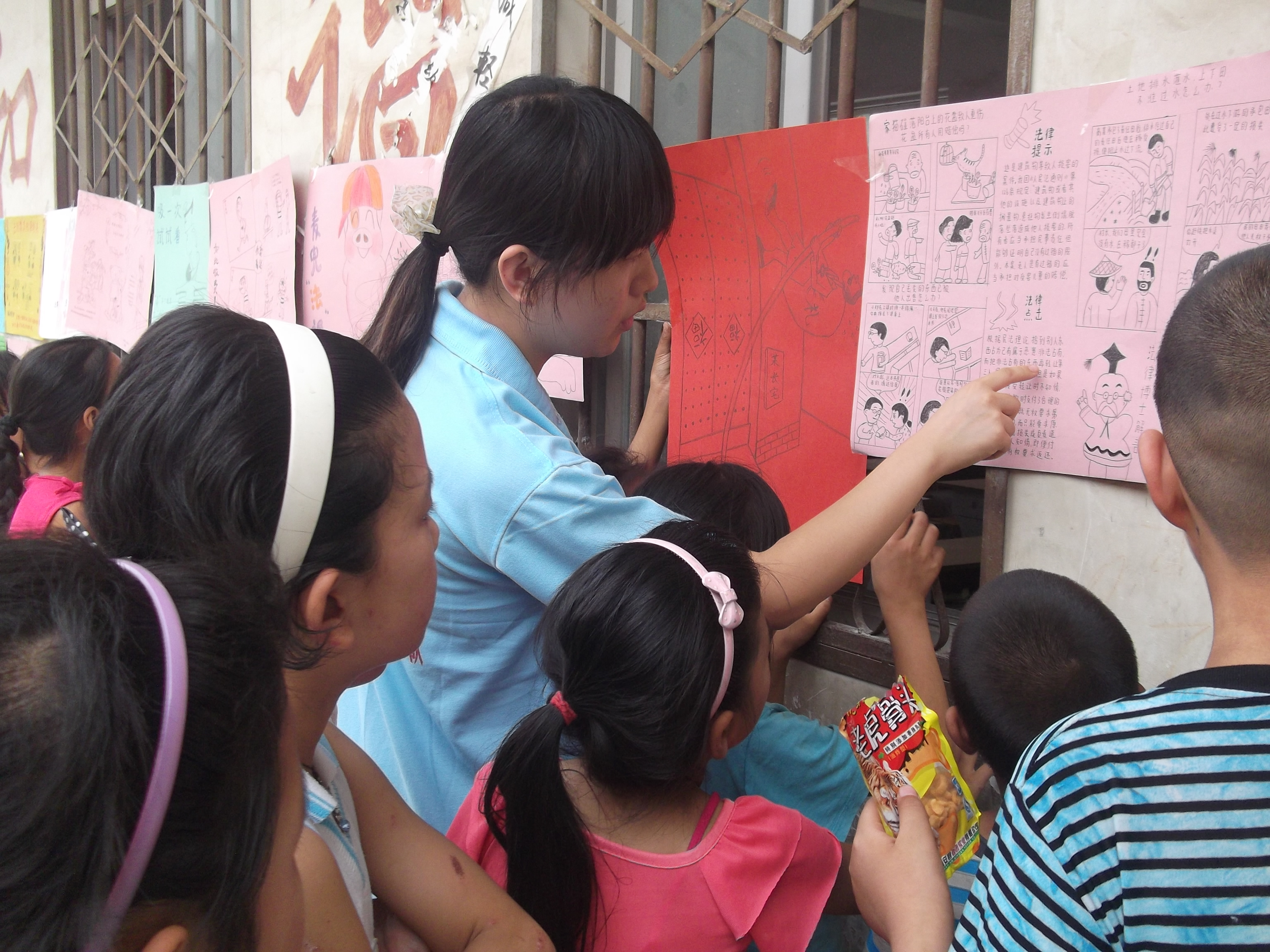 为增加孩子们对法律知识的兴趣和认识,7月13日上午,河南师范大学法律援助服务团在卫辉市狮豹头乡正面村完全小学开展了“寓教于乐,让孩子们知法懂法”趣味漫画展。漫画展共举行了一天,吸引了众多小朋友前来观看。