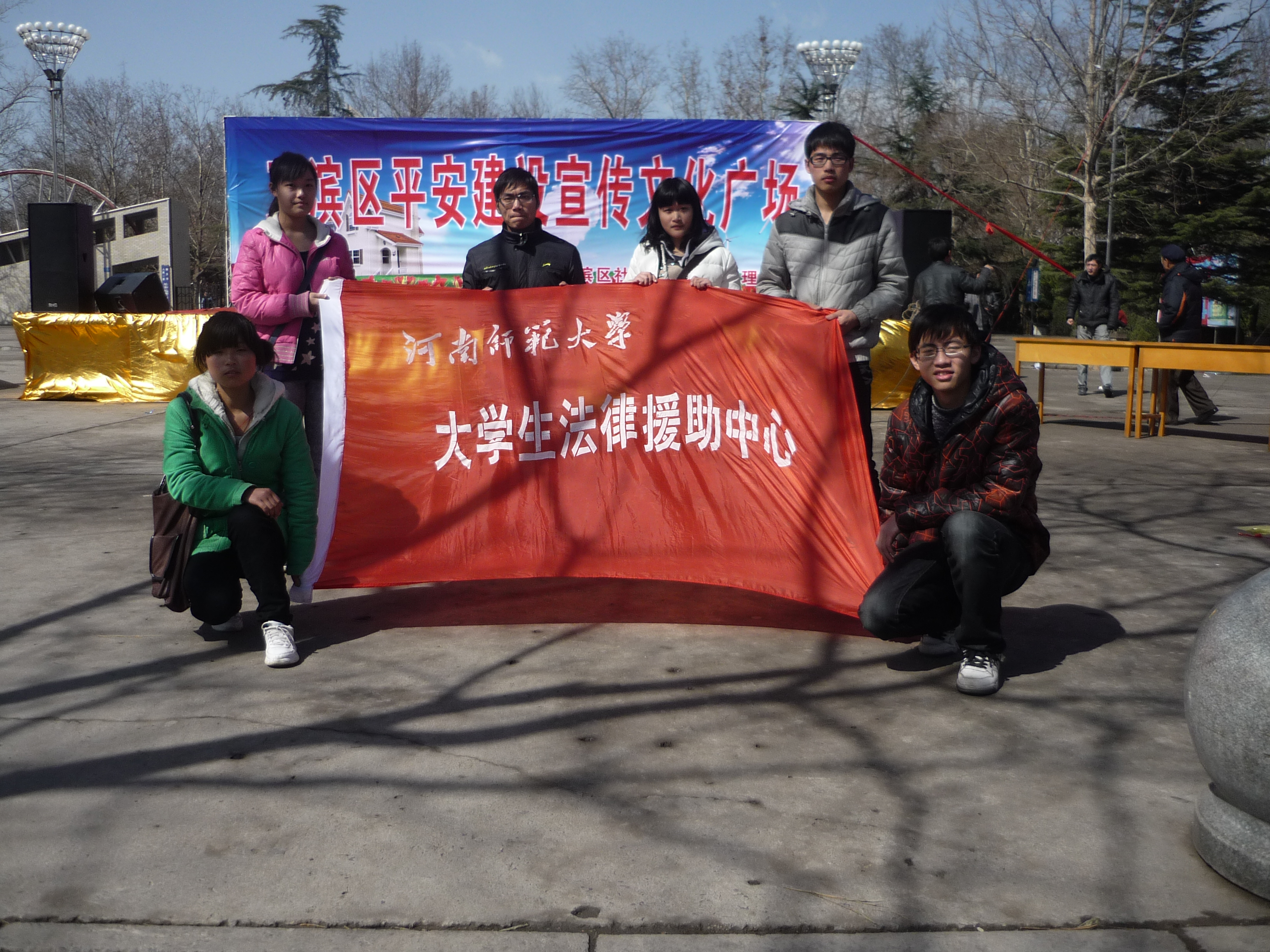 为进一步加强市民的法律知识,共同创建平安新乡,3月23日上午,法学院大学生法律援助中心在院团委书记华锋的组织下,联合新乡市司法局在新乡市体育中心开展“平安建设”系列活动的普法宣传工作。