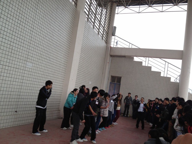 素质拓展训练是一种以激发青年学生个人潜能,从而培养乐观心态和坚强的意志,提高学生心理素质的活动。本次训练共分为团队风采展示、团队合作闯关、领袖风采三个环节。上午的训练内容在青年活动中心进行,首先由学生们自主选择教练组成9个队伍,简短的自我介绍后活动进入到团队风采展示环节,各队成员集思广益,设计本队的队名、口号、队歌和队形。大家的精彩表现使活动现场气氛异常热烈。下午的训练在西区体育场进行,各种团队合作比赛不仅要求个人的能力素质更需要团队的沟通协作。面对各种挑战,小组成员们积极讨论和研究对策,并不时的喊口号来鼓舞士气,成功完成每一项挑战。最后的领袖风采环节同学们不仅体会到了作为一名学生干部所肩负的责任感同时也学习到了成为一名合格的学生领袖应具备的素质。至此,一天的素质拓展训练落下了圆满的帷幕。