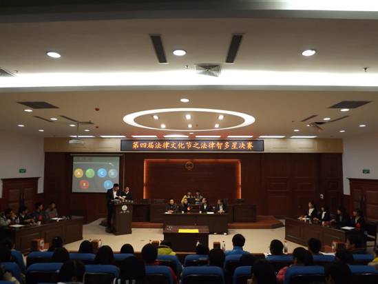 为增强在校大学生的法律意识,提高学习法律的趣味,河南师范大学第四届法律文化节之法律智多星决赛于12月9日晚在模拟法庭举行,法学院11级辅导员左红娟老师及其他各院的学生会主席应邀参加了此次活动,并担任了活动的评委。本场决赛在法学院精心的策划和组织下取得了圆满成功。