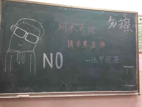 此次活动进行了充分的前期准备。法学院宣传部、团委办公室通过QQ空间、微博等方式进行宣传,呼吁同学们要严于律己、坚决反对考试作弊。活动伊始,学生会宣传部成员在东区教学楼B楼101、102、103等教室和A楼103教室内进行考风建设活动的黑板报警示语活动。学生会宣传部通过漫画和一些个性语言如“歪脖”漫画小人、“考试凭实力、才能对得起”等来宣传考风纪律,不仅能吸引同学们的注意,还能起到一定的警示作用。同时在考试期间,宣传部也通过QQ空间、微博等网络途径进行考风建设活动活动建设的宣传,提醒同学们诚信考试、严禁作弊。此次活动取得了良好的宣传效果。