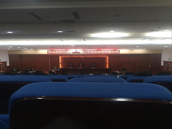 活动由张荣现教授、团委学生会副主席黄世龙、法律服务部部长魏新颖、法律实践部部长王星、学习部部长韩晓旭等担任评委。本次模拟法庭活动的四组选手根据各自小组的案件进行模拟审判。活动中,模拟审判环节紧凑,从审判长到审判员,从公诉人到辩护人,从法警到犯人,学生演绎的淋漓尽致。第一组选手以一件刑事案形象地论述了抢劫与抢夺的区别,辩护人熟练运用法律条文,其间辩护更加精彩。在第四组模拟审判时,双方律师扮演者十分投入角色,激烈的辩论将比赛推入高潮,审判长扮演者时刻谨记维护法庭纪律,他们将一场劳动报酬纠纷案审判展示在大家面前。最后,张荣现教授分别对选手表现和庭审过程做了精彩点评,张教授对同学们的努力表示肯定,在组织案件方面提出指导性意见,并对同学们寄予厚望,模拟法庭活动在热烈的掌声中结束。