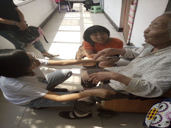 为提高同学们参加本次活动的积极性,在活动开展前首先进行宣传。5月6日上午,我们前往养老院。到达养老院后,在组织者的领导下,所有工作都有序进行。我们以小组为单位,帮助打扫养老院内的卫生,为老人分发水果,并且积极的陪老人聊天,为身体不好的老人做简单的按摩,遇到行动不便的老人,主动搀扶和照顾。活动的最后,同学们都承诺会常去看望老人。