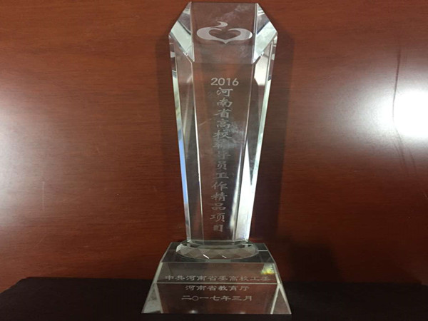 在2016年全省高校辅导员工作精品项目颁奖环节,我院党委副书记葛照金的“陪伴成长工程”受到表彰,并作为唯一一个入选教育部辅导员精品项目在现场进行专题视频展示。省委高校工委专职副书记、省教育厅党组副书记郑邦山给予该项目以高度评价,与会高校领导老师反响热烈并纷纷要求拷贝视频原件。