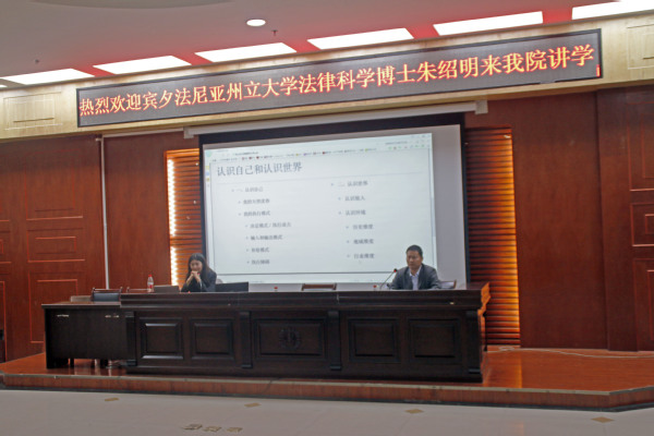 4月23日下午,应法学院邀请,美国宾夕法尼亚州立大学法律科学博士朱绍明在东区模拟法庭作了题为“国际视野与本土作为:青年人应当如何培养”的报告。法学院副院长于庆生、法学院专兼职辅导员及200余名学生共同聆听了本次报告。报告会由法学院党委副书记葛照金主持。
