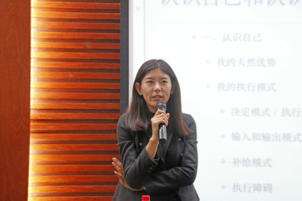 报告会伊始,朱绍明询问了在座同学对自身的认识和未来的规划,并以此为契机回顾了自己进入大学以来的求学、工作和成长经历。当提及担任学生会主席给自己未来的助力时,她建议各位同学,无论结局如何,都要把过程中的每一步走好,现在的努力对以后的发展大有裨益。随后,朱绍明围绕如何认知自己、认识世界展开论述。她强调,要把握好自己的天然优势,了解自身的输入和输出模式,并培养符合自己的补给模式,克服执行障碍,以此更好的认识自我。她指出,要从历史、地域、行业三个维度来认识环境,有意识的了解这个时代,不必带有太强的功利性,要让外界环境定义自己,努力提升自己的核心竞争力。