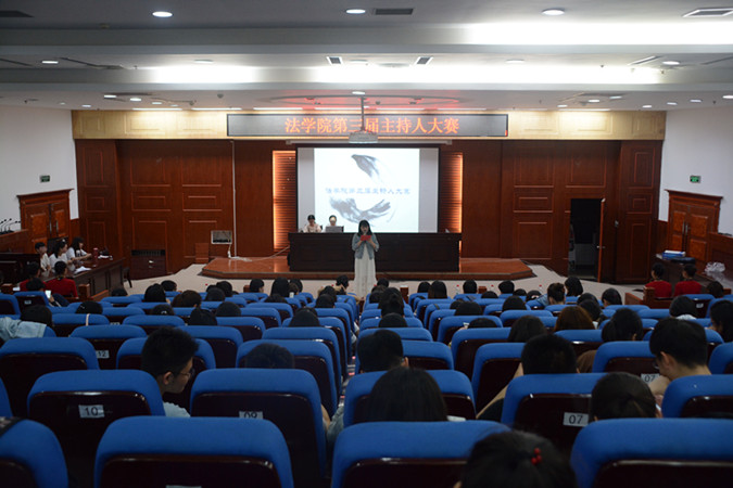 为锻炼提高同学们的口语表达能力和综合素质能力, 5月25日晚,由法学院文娱部举办的“法学院第三届主持人大赛”在模拟法庭举行,邀请河南师范大学播音站播音员和法学院团委学生会学生干部参加并担任评委。2017级法学二班参加本次活动。